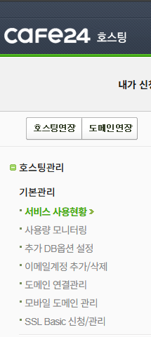 3. 호스팅관리 > 기본관리 > 서비스 사용현황 이동
