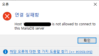 테이블 추가해야할 일이 있어서 간만에 db접속하려하니, 해당 알럿이 뜬다.