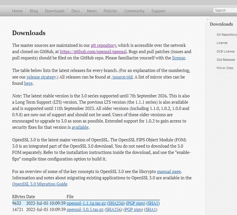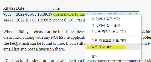 1. https://www.openssl.org/source/ 접속