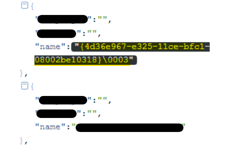 파싱결과를 보니... 아래와같이 name key의 value가................ 알수없는 값으로 들어가 있었다...