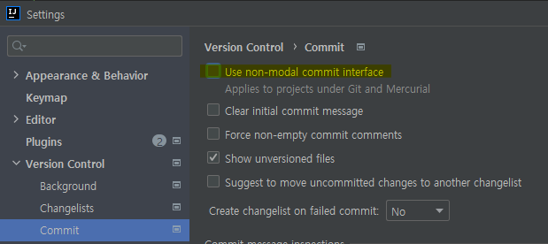 적용하면 intellij Local Changes 탭이 활성화된다.